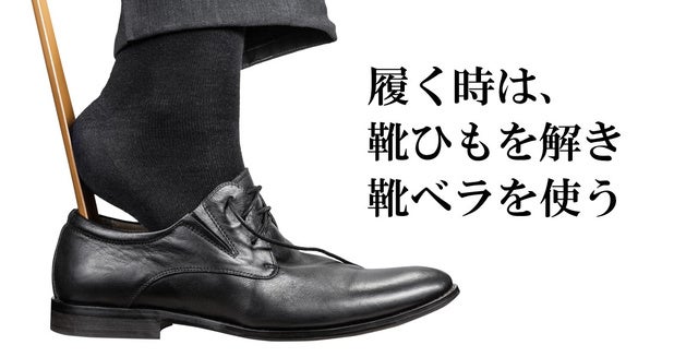靴ベラを使う時でも、今まで力ずくで半ば強引に・・・足を入れ込む。そんな事がなくなります。スッとサッと履けて、ビジネススマート!できる男はノビックス!