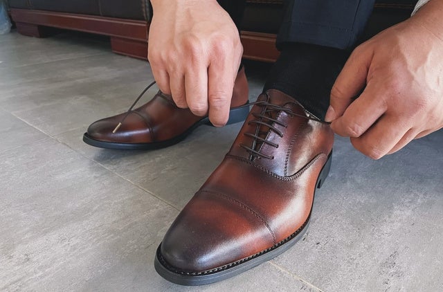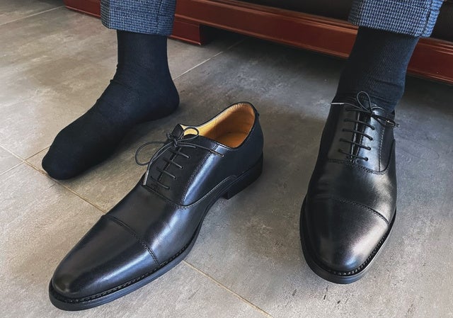 この広がりは通常の靴紐では出来ません。いつものビジネスシューズの紐を変えるだけです。