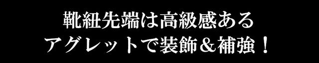 靴紐の先は、こだわりのアグレット。見た目美しく、補強で紐は長持ち!