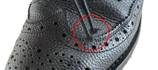 靴紐の先端はビニールで硬く巻いてあることが多いです。それがだんだんと劣化していつの間にか取れていたり、割れてしまい、紐先端が解けることを経験されている方は少なくはありませんよね。こうなると、どんどんボロボロに・・