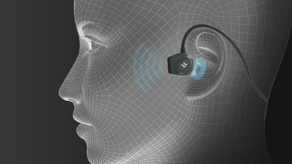 PKT-BCH900の振動モジュールはAr Suspension®技術によって、文字通り空気中に浮かんだ構造をしています。これにより、イヤホンの外殻のみに接続してごく小さな圧迫力で皮膚に接触でき、さらに共鳴効果で振動を伝達するため、よりシンプルな条件のもとで動作できます。このように、より強大な音声解析力とより幅広いダイナミックレンジ、モジュールの小型化を実現したAr Suspension®技術は、骨伝導技術の未来を変えると言えるでしょう。