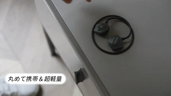 PKT-BCH900の特徴のひとつが、丸めてコンパクトにできるユニークなデザインです。くるっと丸めると直径はわずか8cmですので、バッグやポケットに楽々収納できます。また、ヘッドバンドは頭の小さ目な方にもしっかりフィットします。