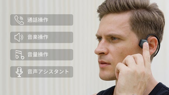 右側のイヤホンに多機能ボタンを搭載しており、このボタン1つで通話の開始と保留、終了、音楽の再生と停止などを操作可能です。各操作には音声サポート機能が付いています。