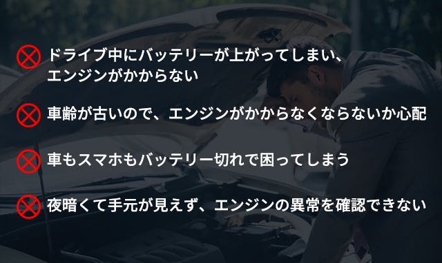 TP300があれば、バッテリー上がりで止まってしまった車のエンジンを一発で起動させることができます。また、USBポートからノートPCやスマホに充電することも可能です。超小型で場所を取りませんので、車に常備しておくと大変便利です。