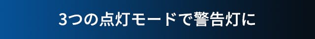 また、SOS、フラッシュ、常時点灯の3つのモードが選択できる赤色の警告灯としても使用可能です。夜タイヤのパンクや事故が発生した時、後方の車に知らせることができます。