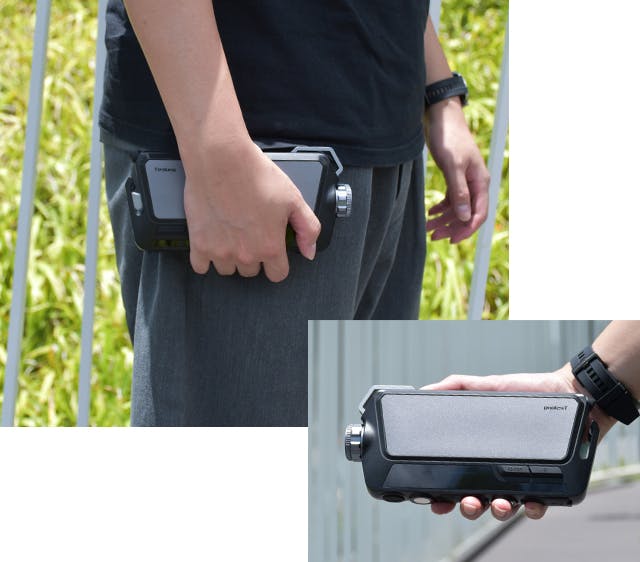 材質はアルミ合金とポリカーボネート、ABS樹脂を採用しました。火や落下に強いだけでなく、外観も洗練されたデザインです。