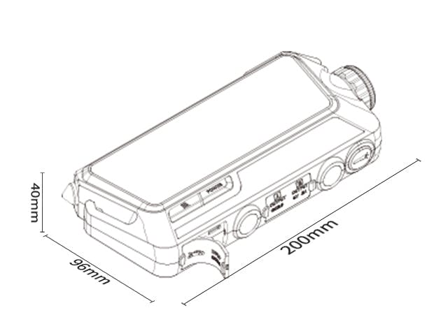 TP300はサイズ200×96×40mm、重さ605gの超小型設計で、片手で楽々持ち歩けます。車に常備しておいても、バッグに入れても、場所を取りません。
