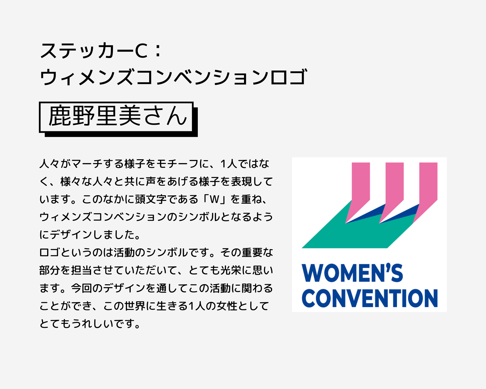 また、私たちの初の試みとして、2023年5月5日には、ウィメンズマーチをきっかけにジェンダー平等やフェミニズムに関心をもった人たちと、これまで活動を続けてきたフェミニストアクティビストたちが、出会い、交流し、学び合うことを目的とした「ウィメンズコンベンション」を開催したいと考えています。