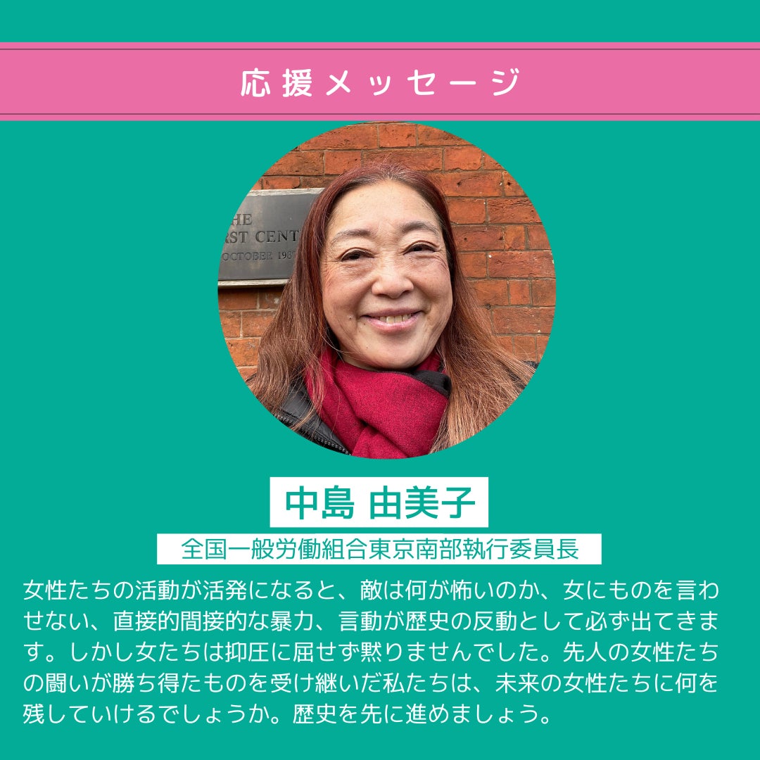 全国一般労働組合東京南部執行委員長の中島由美子さんから応援メッセージをいただきました!