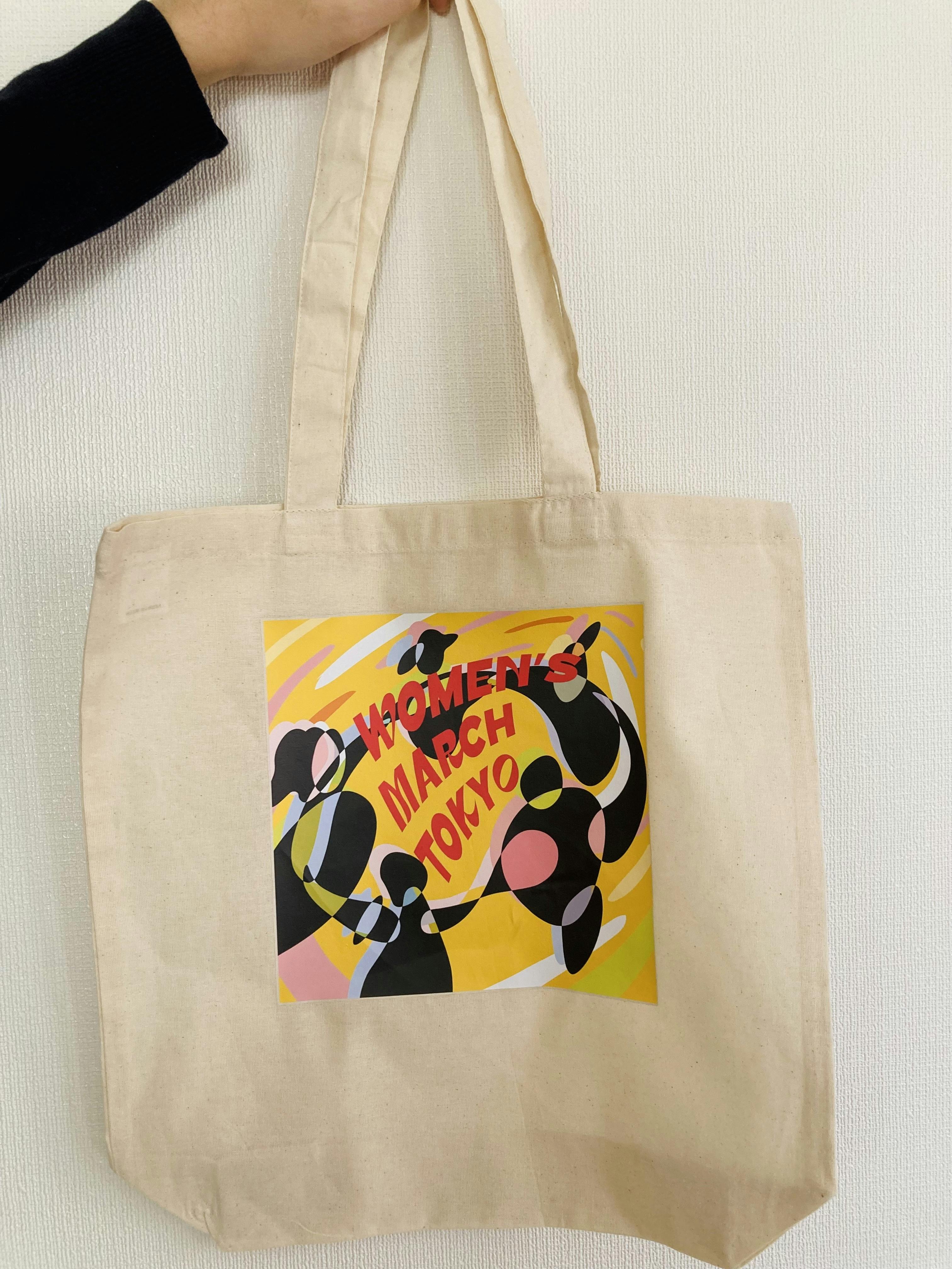 楽しくてワクワクするウィメンズマーチ東京の輪がどんどん広がっていくようなイメージ。デザインしてくださったのはTシャツのデザインも担当してくださった髙坂美桜さんです。