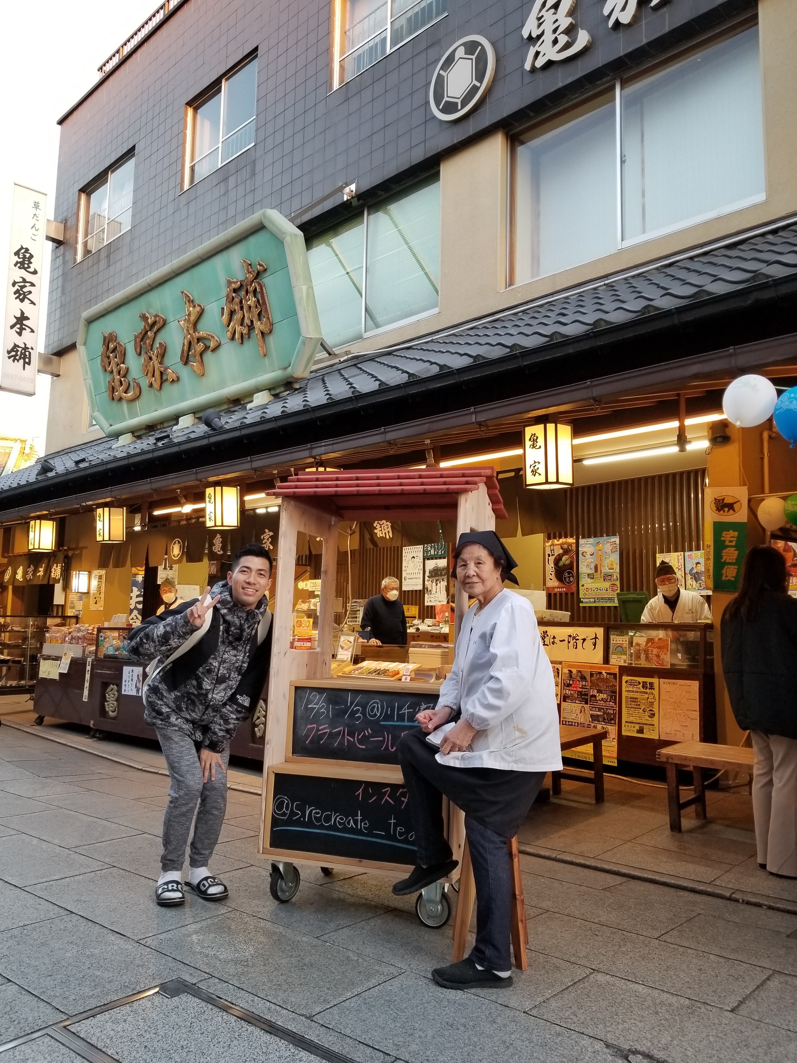 突然お店の前に屋台が登場したらどんなリアクションするのかのミニ実験もしてみたかったので、あえてアポなしで参道のお店にご挨拶しましたが、反応はそれぞれ異なり面白かったです!