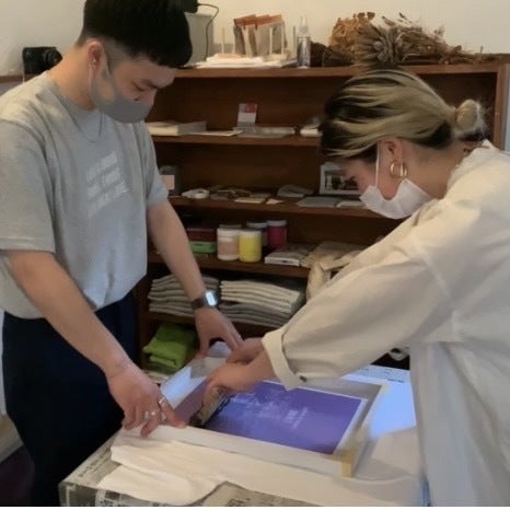 ↓私たちもシルクスクリーンを体験させていただきました!