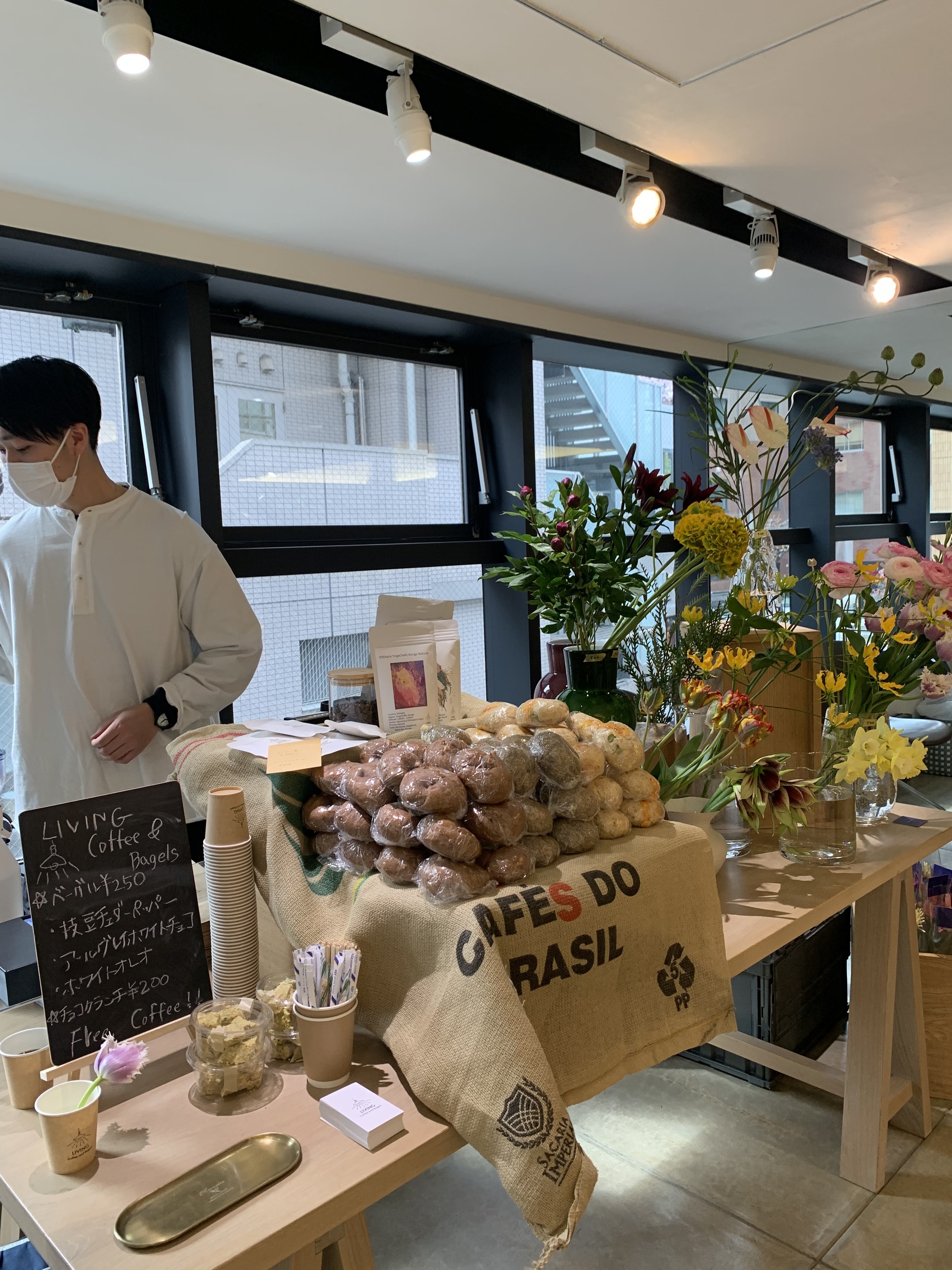 同じタイミングであゆみが趣味でベーグル巡りから作ることまでにベーグルにハマり、せっかくなら2人でとコーヒーとベーグルのポップアップ出店が始まりました。