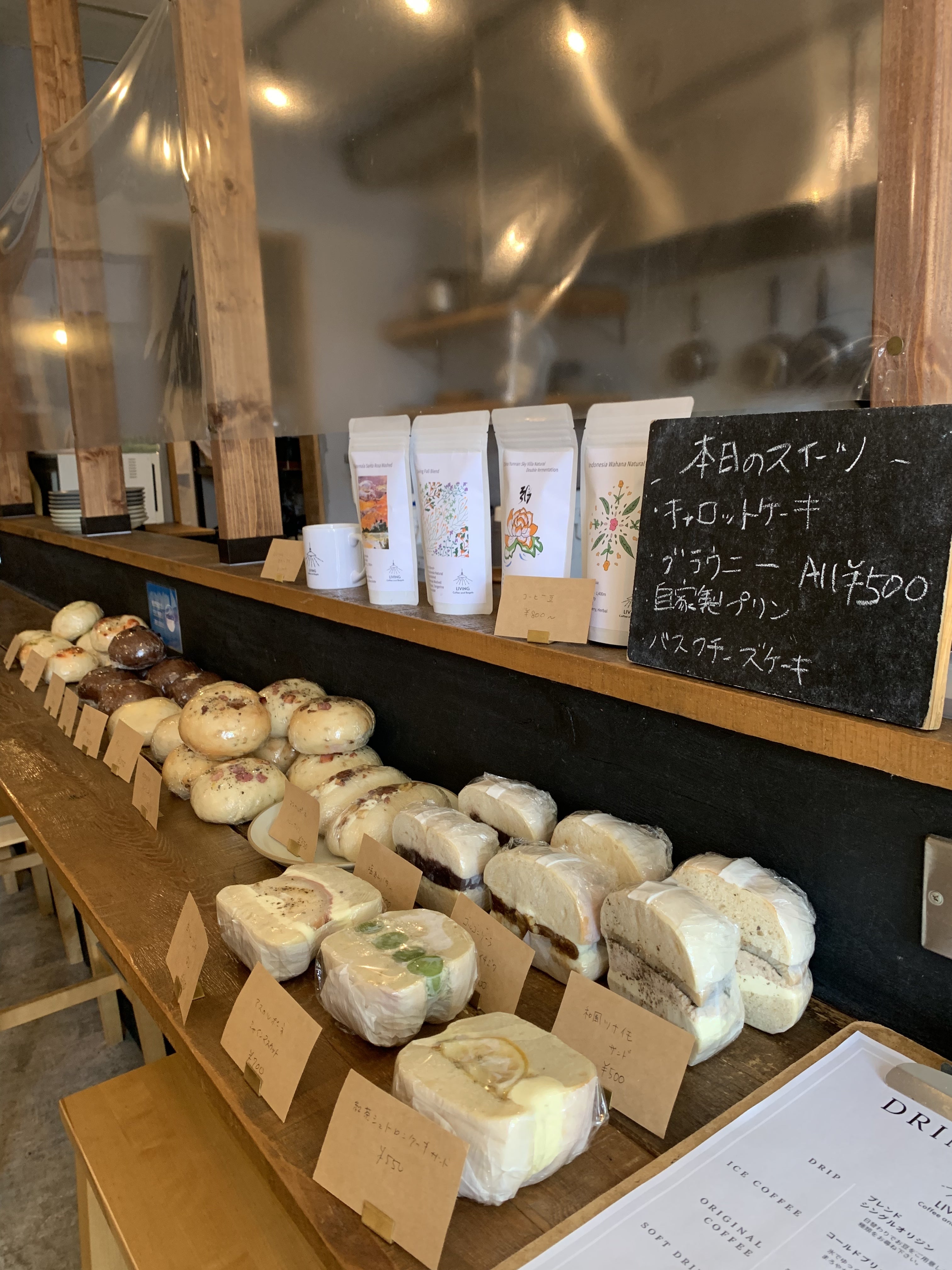 屋号の由来は、よく友人が家に来て美味しい手料理を食べたりコーヒーを飲んだりして談笑している、まったりしている時間が好きだったので、そんな『家のリビングのような心地良い空間』をお店に来てくださるお客さんみんなに味わっていただければという想いをLIVINGに込めました。