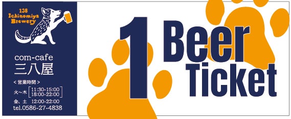 三八屋でハーフパイント1杯をお楽しみいただけ、ちょっとしたご挨拶、お礼にも使いやすいチケットです。