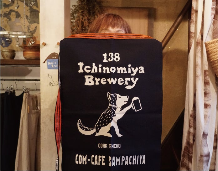 12.7ozのしっかりとした生地に一宮ブルワリーのロゴ、看板、コルク店長前掛けなどを手がけていただいている