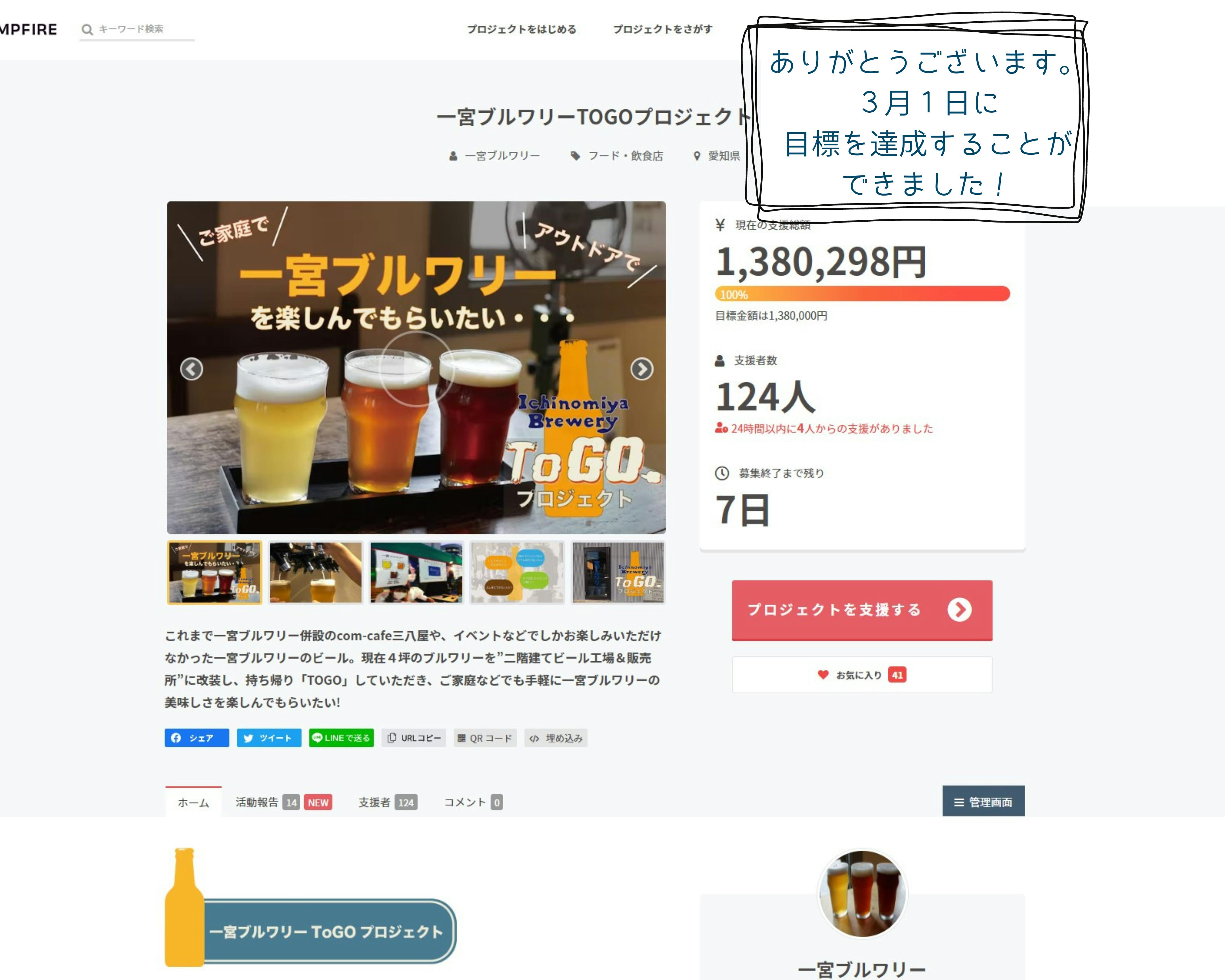 「一宮ブルワリー ToGoプロジェクト」で、138万円を超えるご寄付を頂戴いたしました。