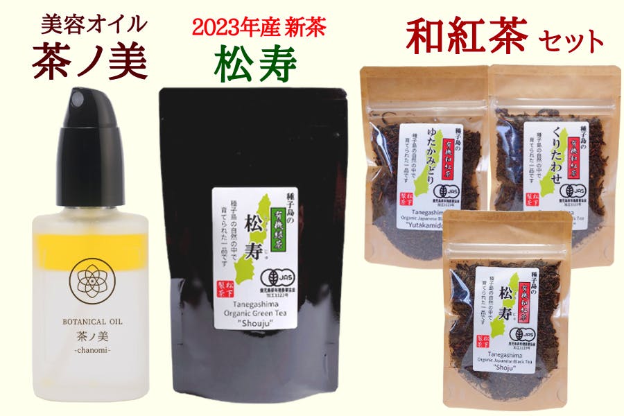 「種子島 松下製茶」様のご協力により、種子島の有機JAS認証も受けている、種子島の希少種「松寿・しょうじゅ」と種子島の茶葉を使って作った「和紅茶のセット」を追加で、ご用意いたしました。