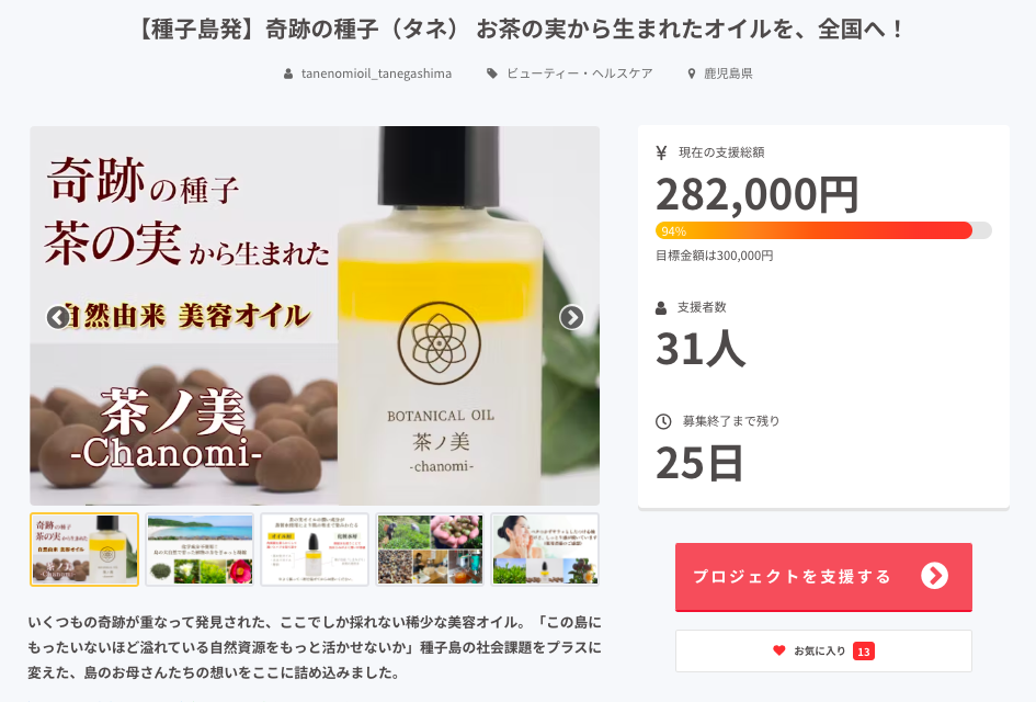 【種子島発】奇跡の種子(タネ) お茶の実から生まれたオイルを、全国へ!