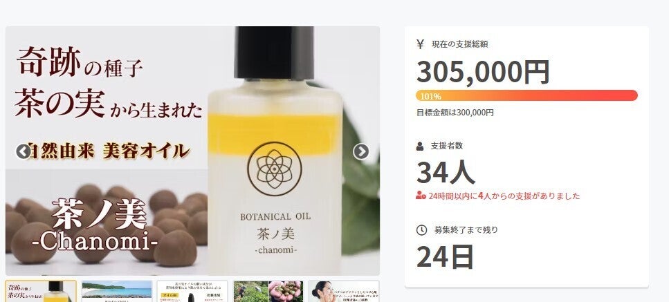 皆様のおかげで、1stゴールを達成いたしました!心から感謝申し上げます。応援してくださる皆様のおかげで、活動を続けることができています。ネクストゴールに向けて引き続き走って参りますので、応援してくださいますとうれしいです。活動内容も定期的にご報告させていただきます!-----本日は工場にてオイルの瓶詰め作業などをしておりました。チャノキから手摘みしたお茶の実(左)の皮をむき(真ん中)、粉にして、その粉を機械にかけてオイルを搾っていきます。写真の通り、瓶1本から採れるオイルはわずか。とても稀少です。搾りたての状態で肌につけてみると、べったりするかと思いきや、意外にさっぱりしています。実際に体感していただきたいです^^種子島は桜が咲き始めました!皆様がよい春を迎えられますように。引き続きよろしくお願い致します。