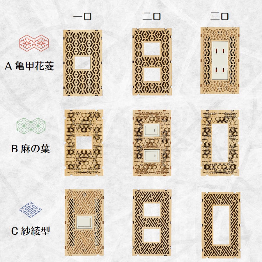 日本の伝統的な和柄の文様を細かくレーザーカットで表現。