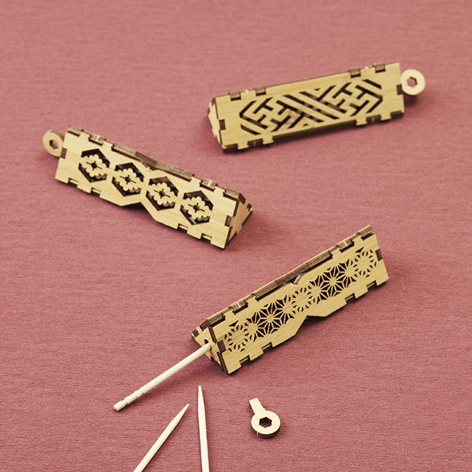 一見シンプルでモダンなクラフト商品ですが、手に取って自分で組み立てるうちに、日本古来の文様の意味を視覚と触覚から感じる事が出来ます。