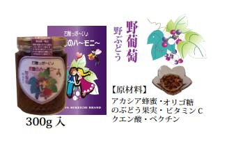 原材料:アカシア蜂蜜、オリゴ糖、のぶどう果実、ビタミンC、クエン酸、ペクチン