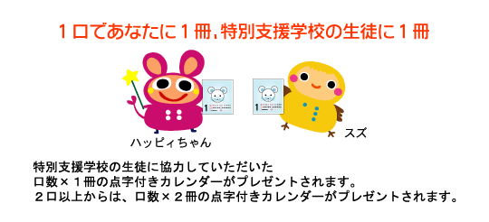 カレンダーの製作・印刷費用と学校への発送費に充てさせていただきます。