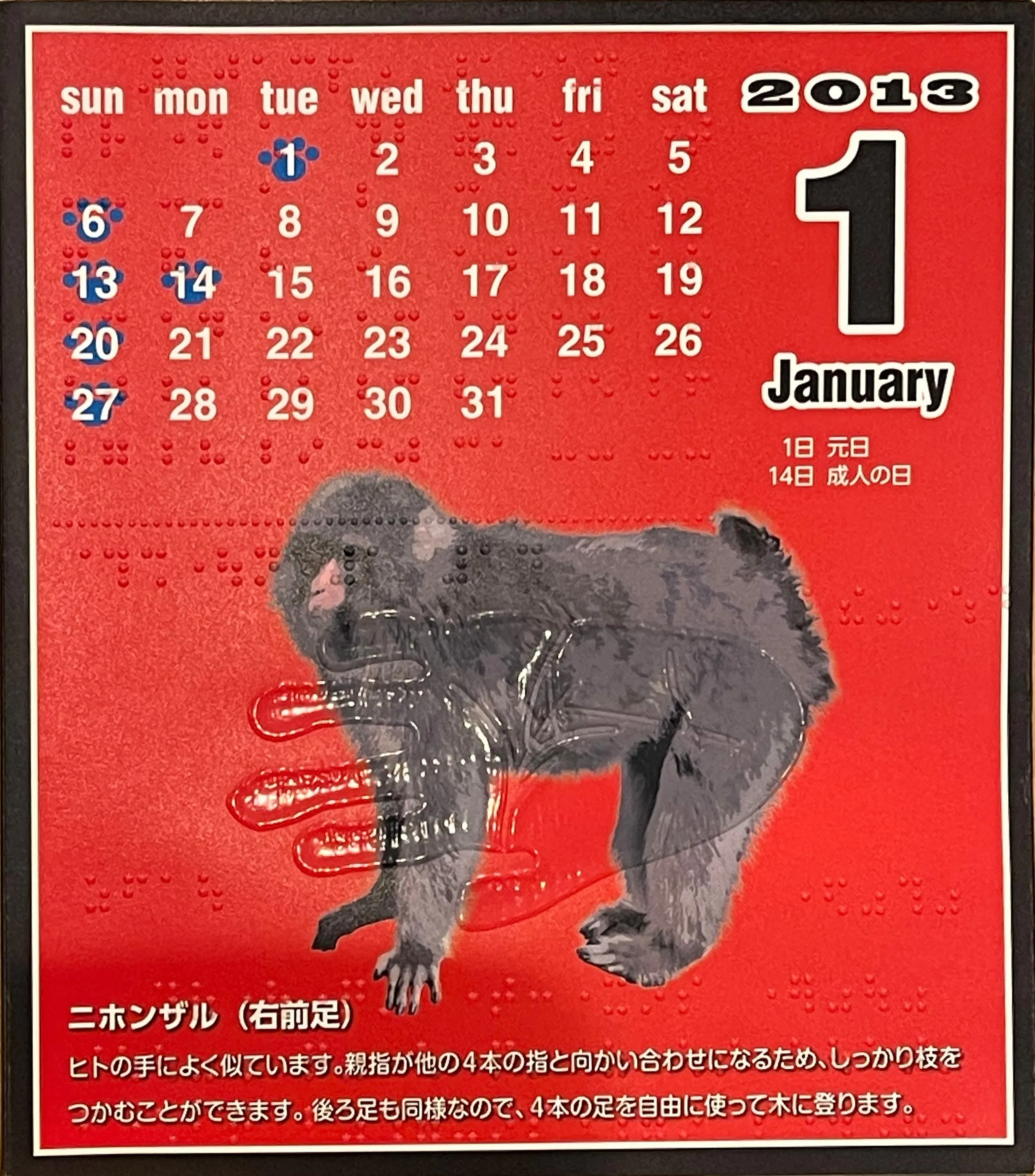 過去の点字付UDカレンダーをご紹介します。2013年版です。