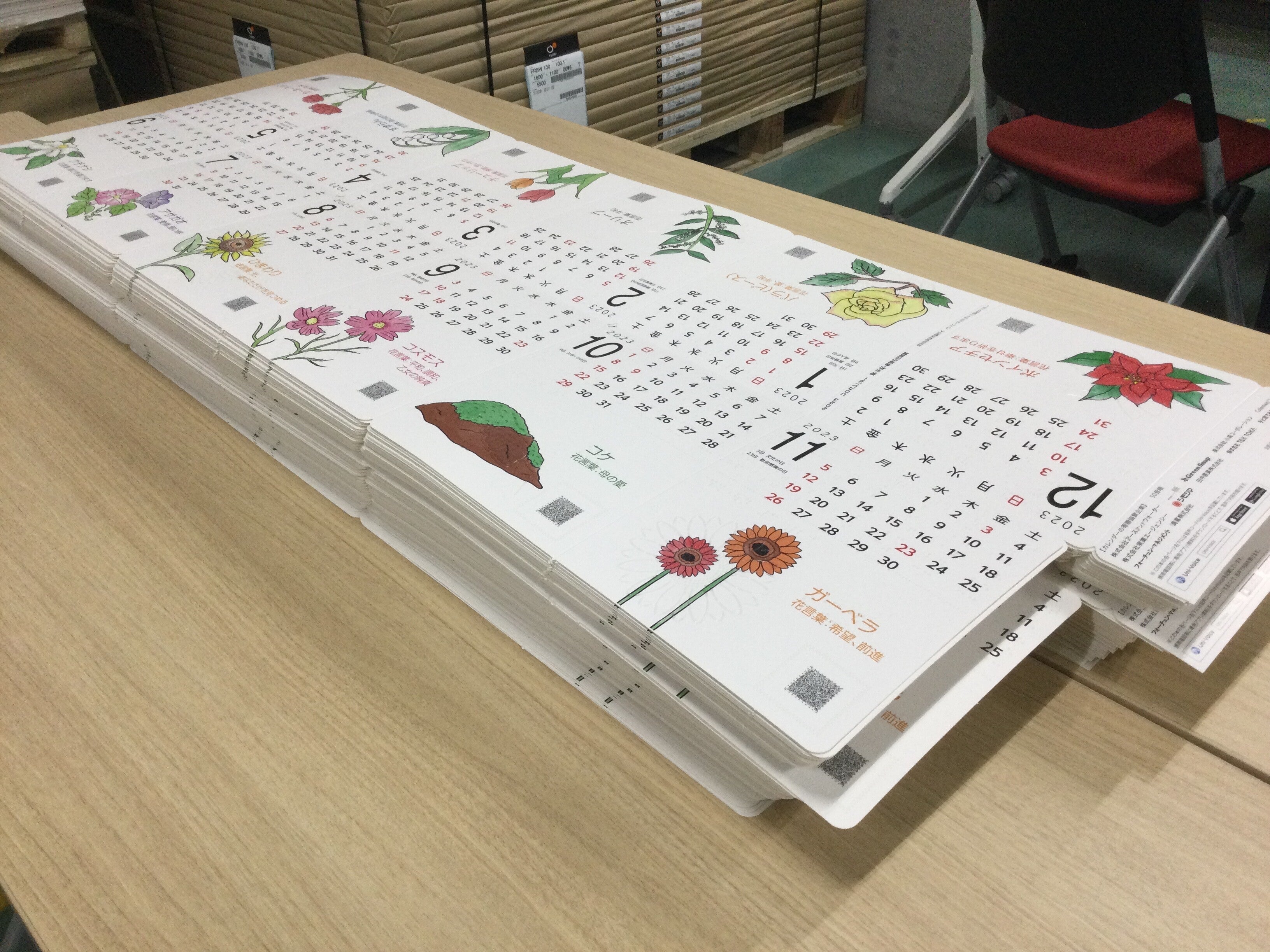 おはようございます。朗報です。ご支援いただいた方には2023年度のカレンダーを1週間程度でお送りします。実際に手に取ってこのカレンダーを広めてもらいたいとの考え方です。いままでご支援いただいた方には今週中に発送いたします。楽しみにしていてください。上記のようにカレンダーは1枚の紙に印刷されており、それを手作業で1冊の本に仕上げています。金具等を使用していないので子供たちにも安全に利用してもらえる配慮があります。