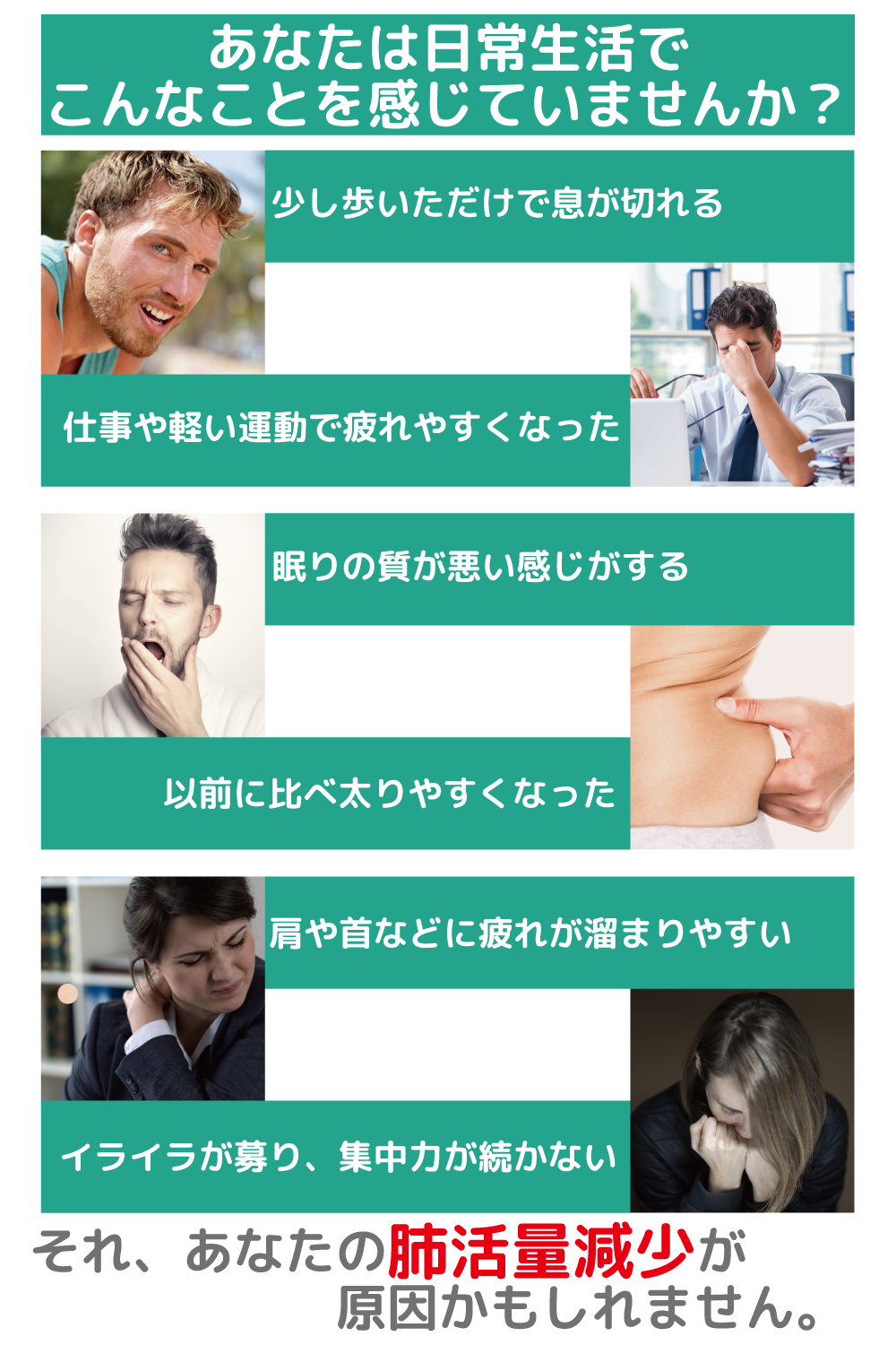 肺活量が減っていると言われても、普段から漠然と呼吸をしているため、なかなか実感できないですよね。