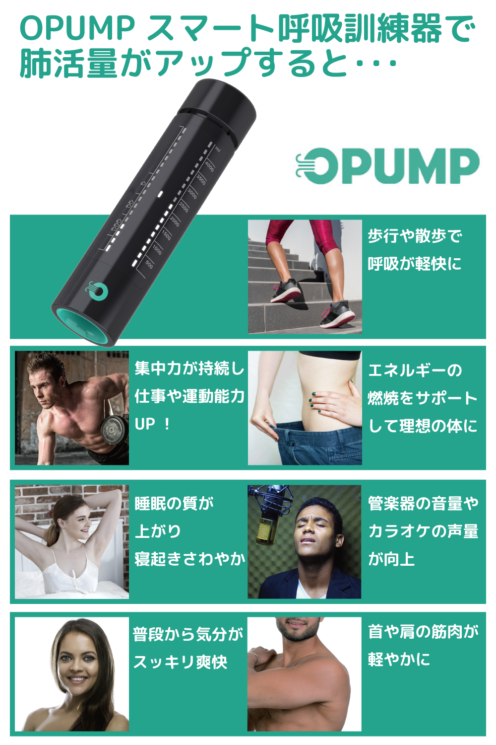 OPUMPスマート呼吸訓練器は1日たった10分、ゲーム感覚で呼吸筋が鍛えられるレーニンググッズです。