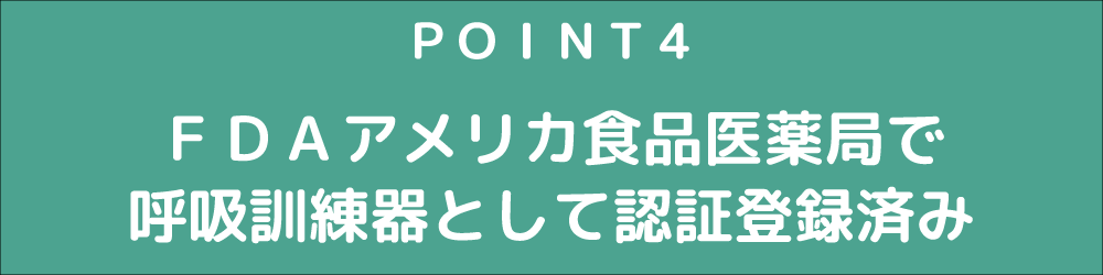 OPUMPスマート呼吸訓練器は世界的にも検査が厳しいとされるFDA(アメリカ食品医薬局)で、「呼吸訓練器」として認証登録されています。