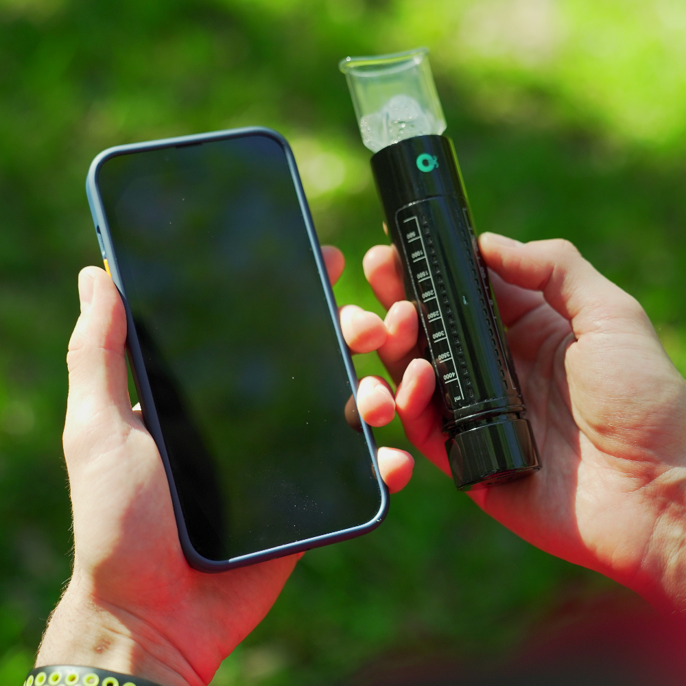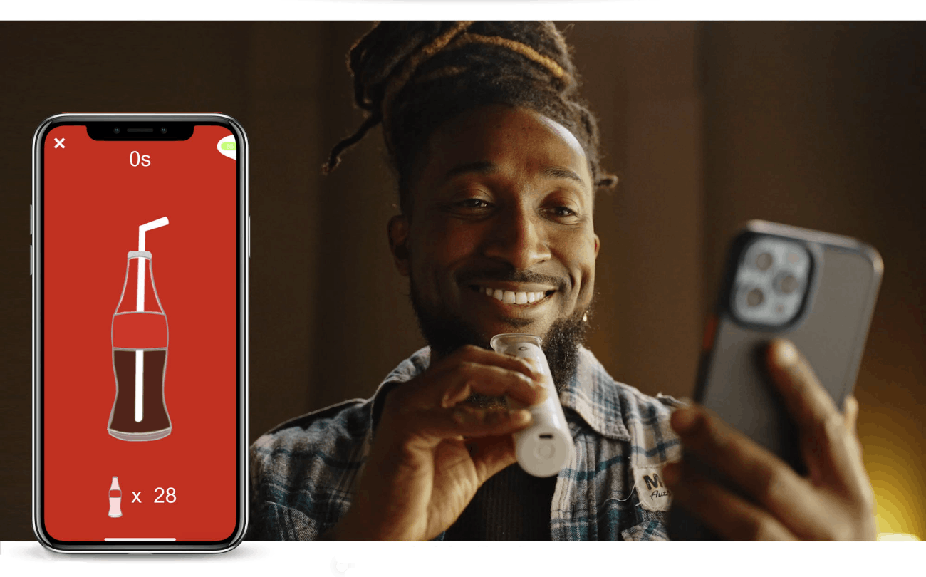 あなたはスマホと連動したアプリのプログラムに合わせてOPUMPスマート呼吸訓練器に息を思いっきり吸い込むだけ。