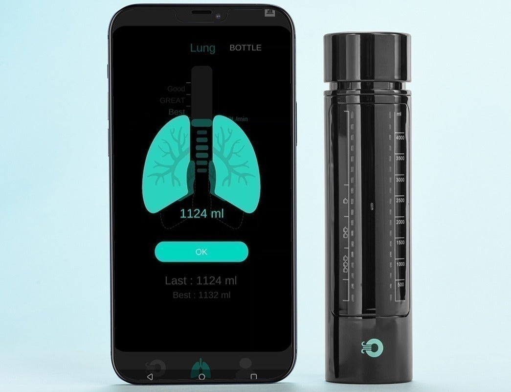 PUMPスマート呼吸訓練器はスプレー缶サイズでも、誤差わずか1%で肺活量を測定できる優れものです。
