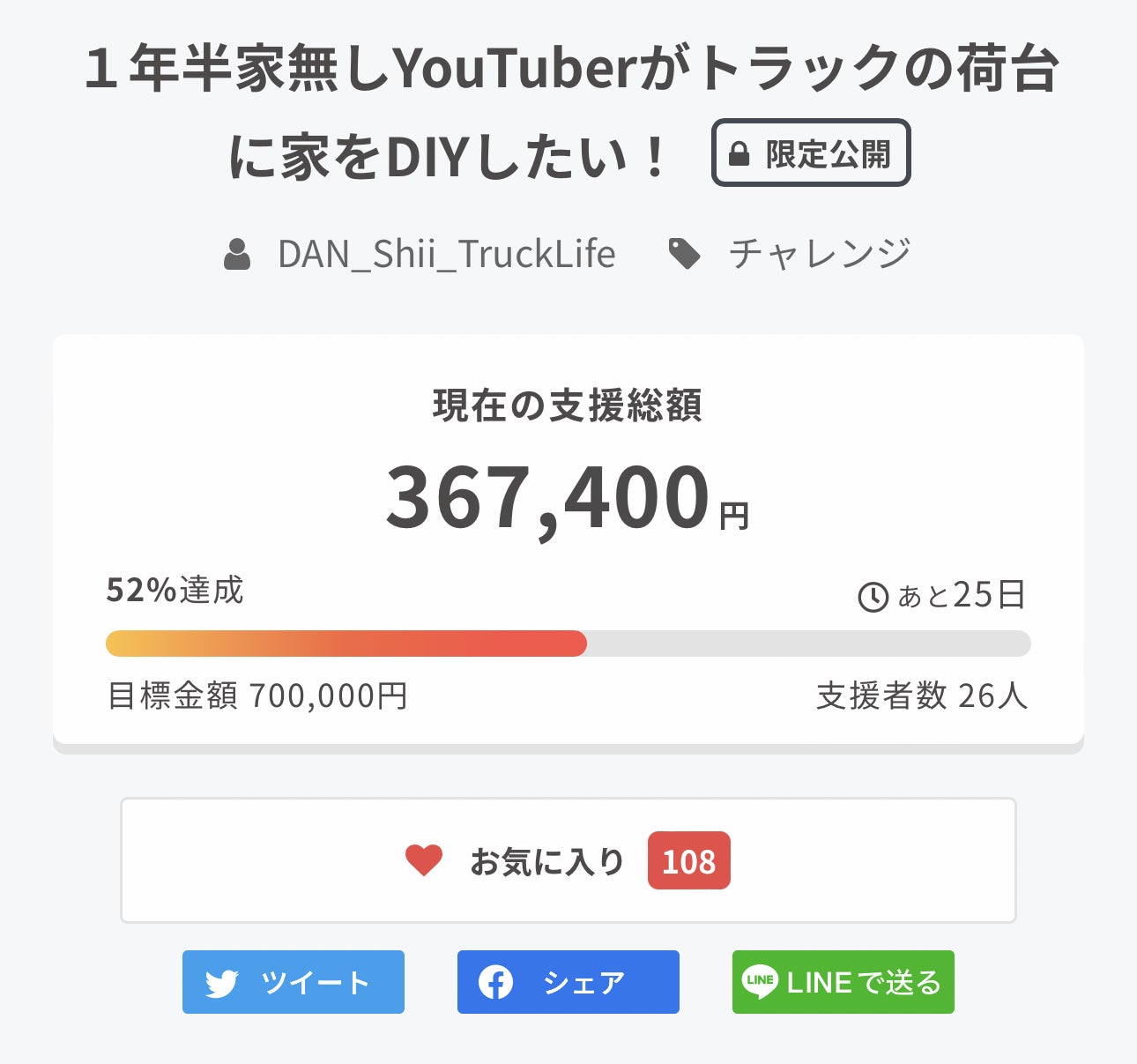 何と!現在、想像以上に沢山の方と金額が集まり、現在支援額367,400円の52%到達しております!!!