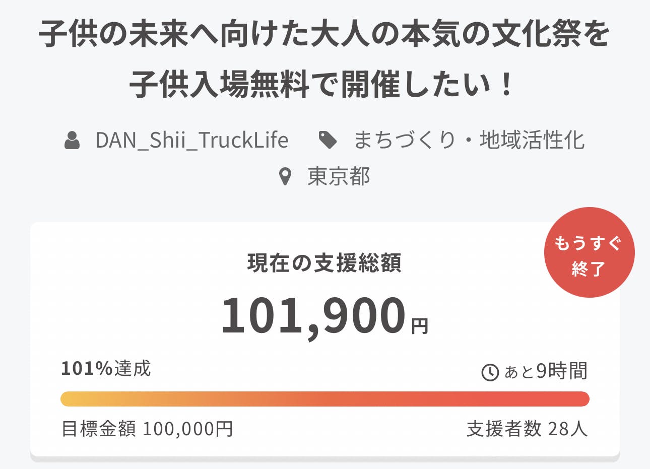 そして今回は荷台ハウス制作イベントということでクラウドファンディングを行いましたが現在支援していただいた金額101900円