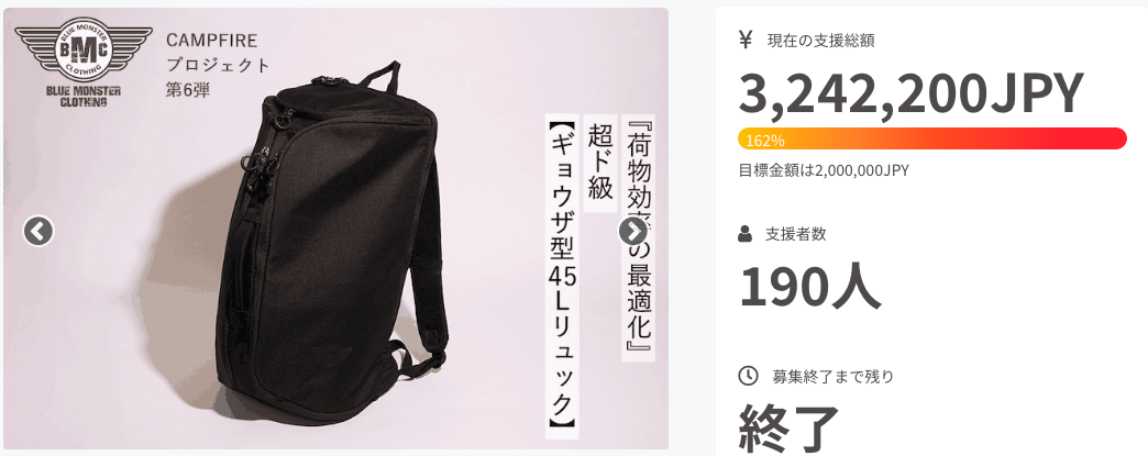 更に『荷物効率を最適化する』超ド級【シン・ギョウザ型45Lリュック】への熱いご支援お待ちしております!!