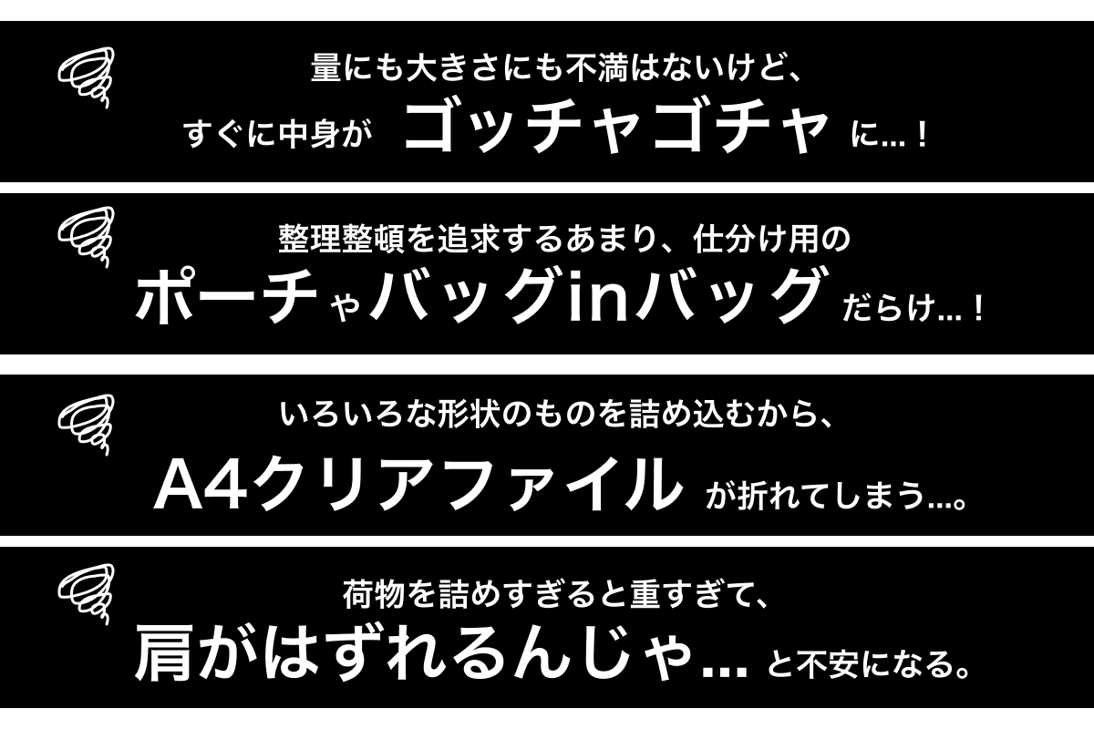 大容量バッグに対する数々のお悩みを解決したいと思いませんか?