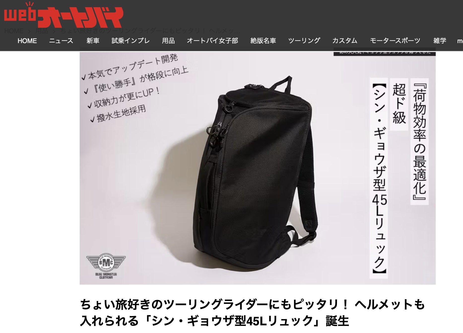 ツーリングを快適にするリュックがここにありますよ!