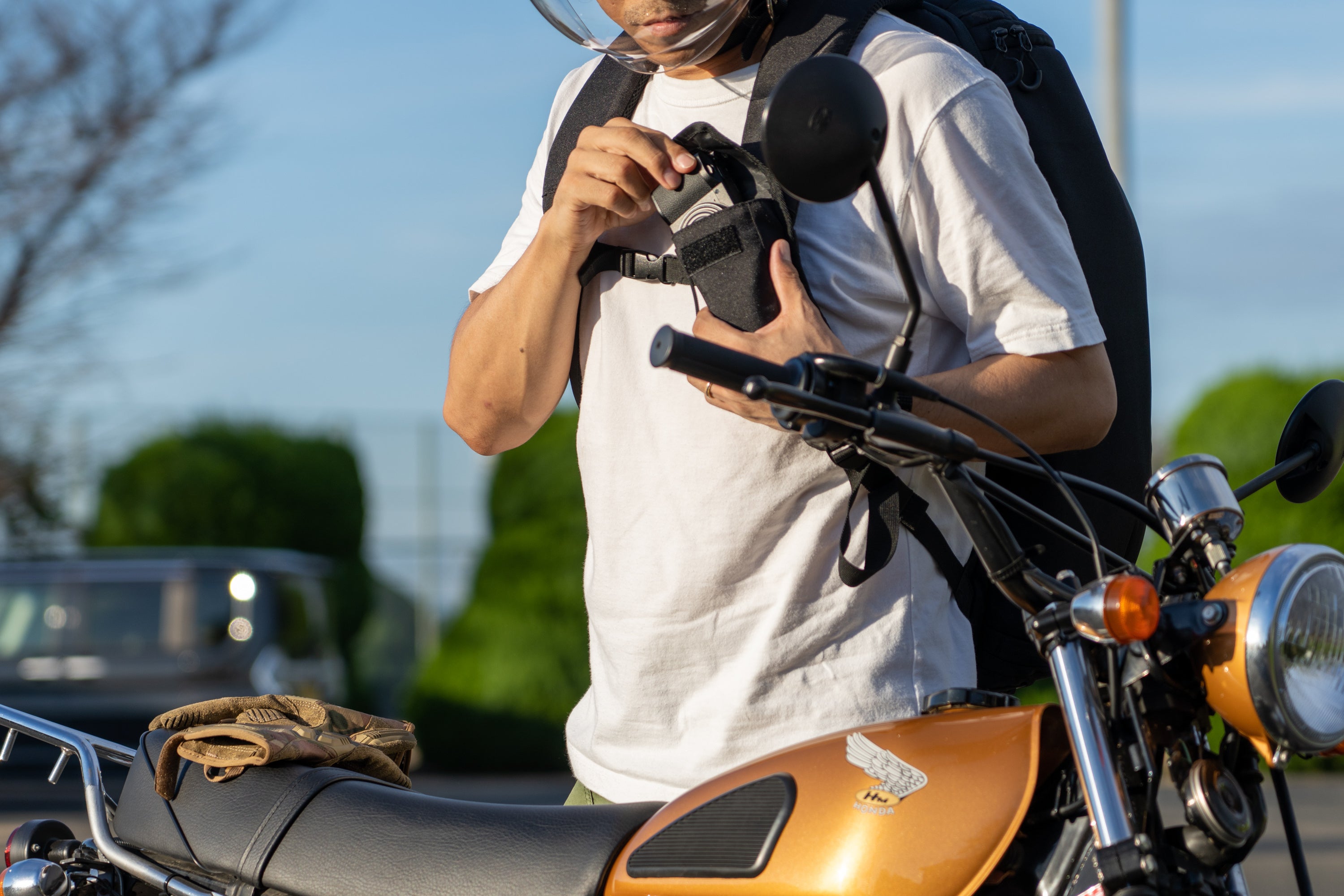 このシン・ギョウザ型リュックは、荷物効率の最適化を目的とし大容量収納&仕分けができるように設計しています!青野自身もライダーなので、もちろんバイクに乗った時に使える様にしています!