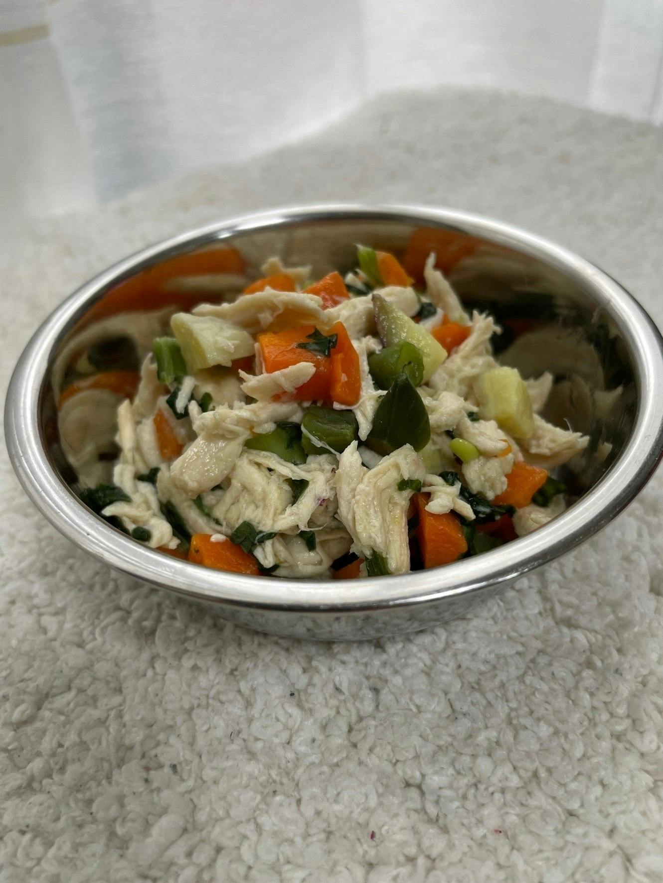 ペットも家族ですので人間が食べてる物と同じ食材で同じ調理方法で作った物を食べて欲しいとの思いでこのドッグフードを作りました。