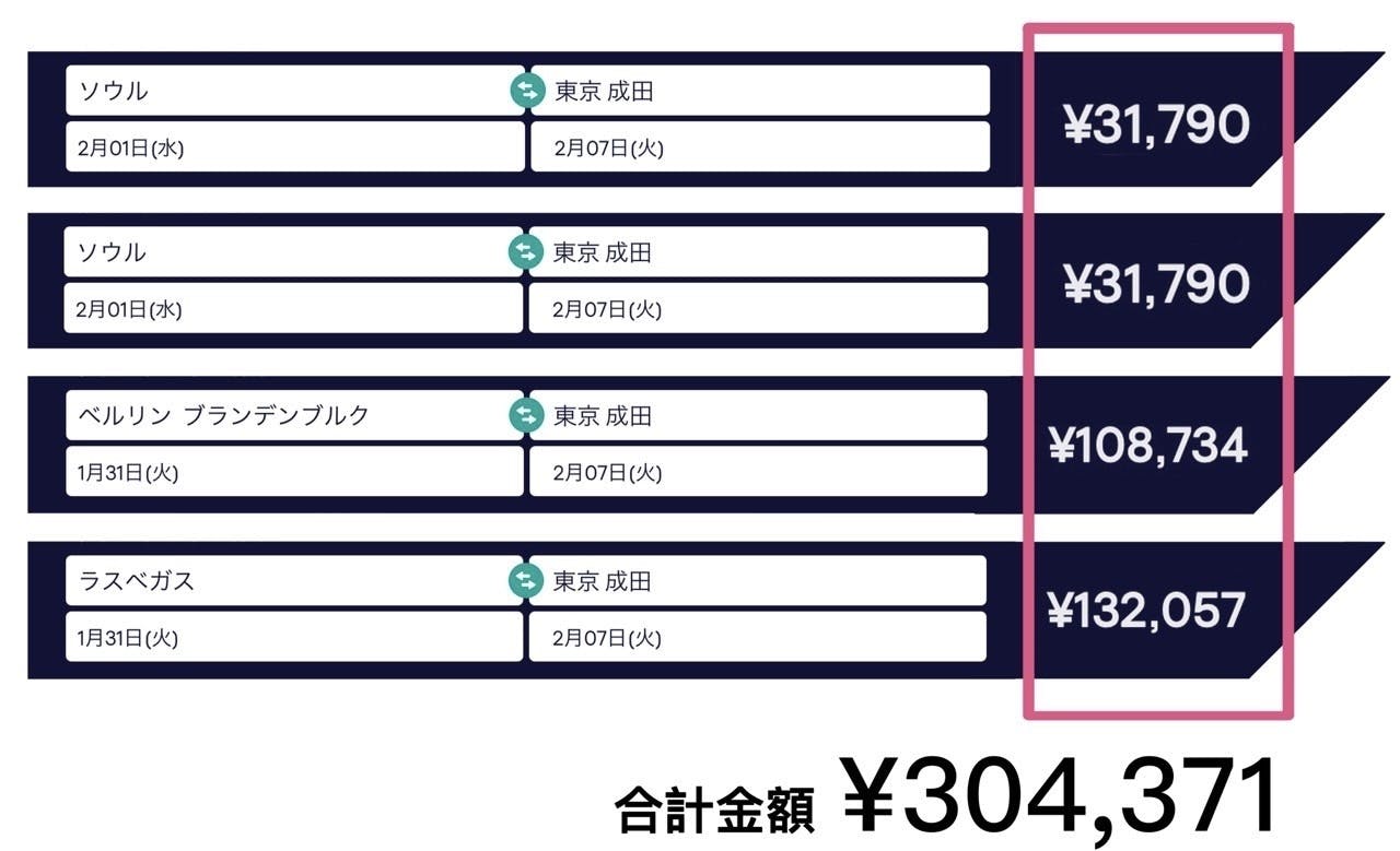 (フライト代という性質上、金額は変動しますがこの金額で固定とします)