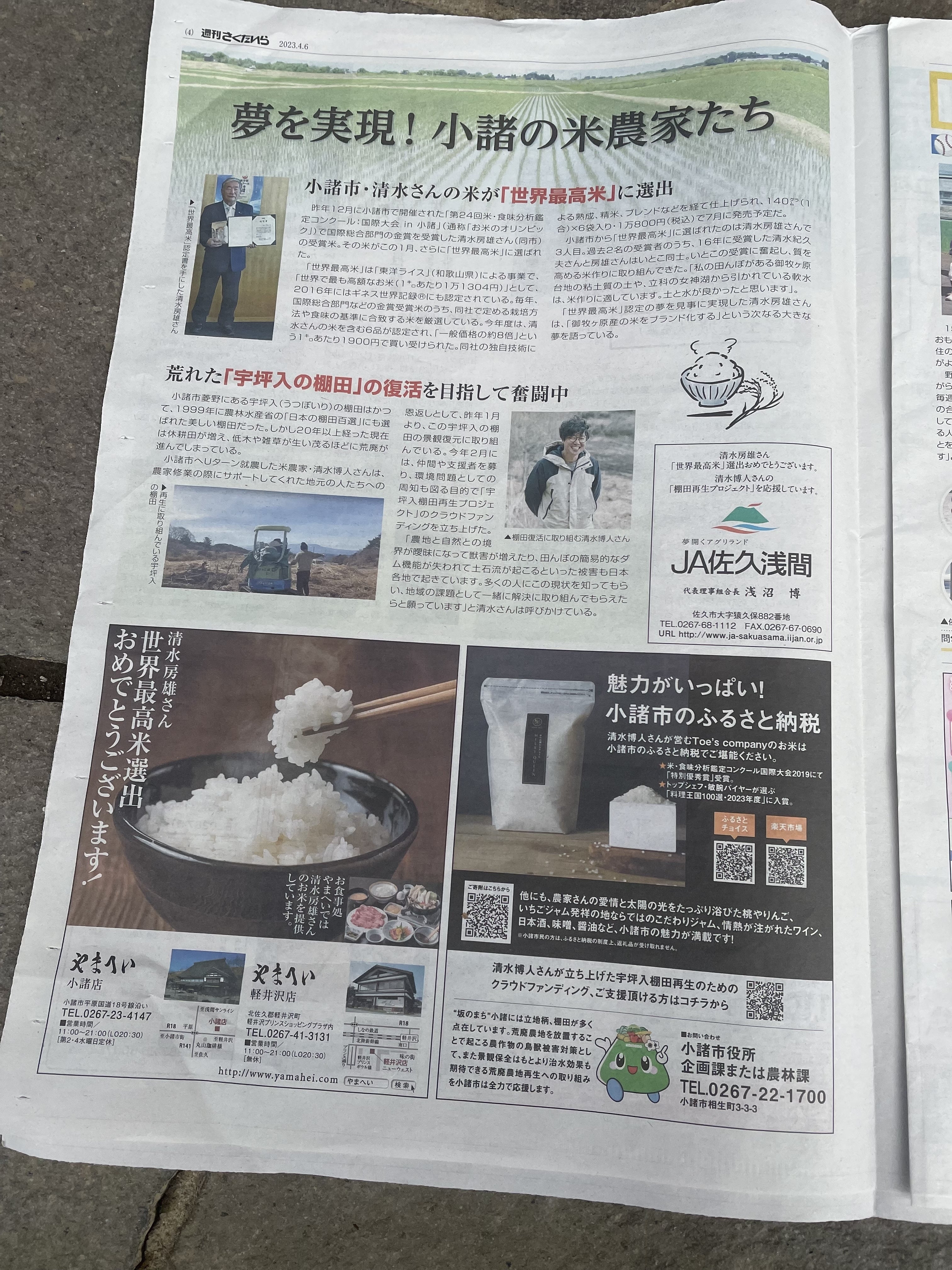 【開墾】新聞に載せて頂きました!