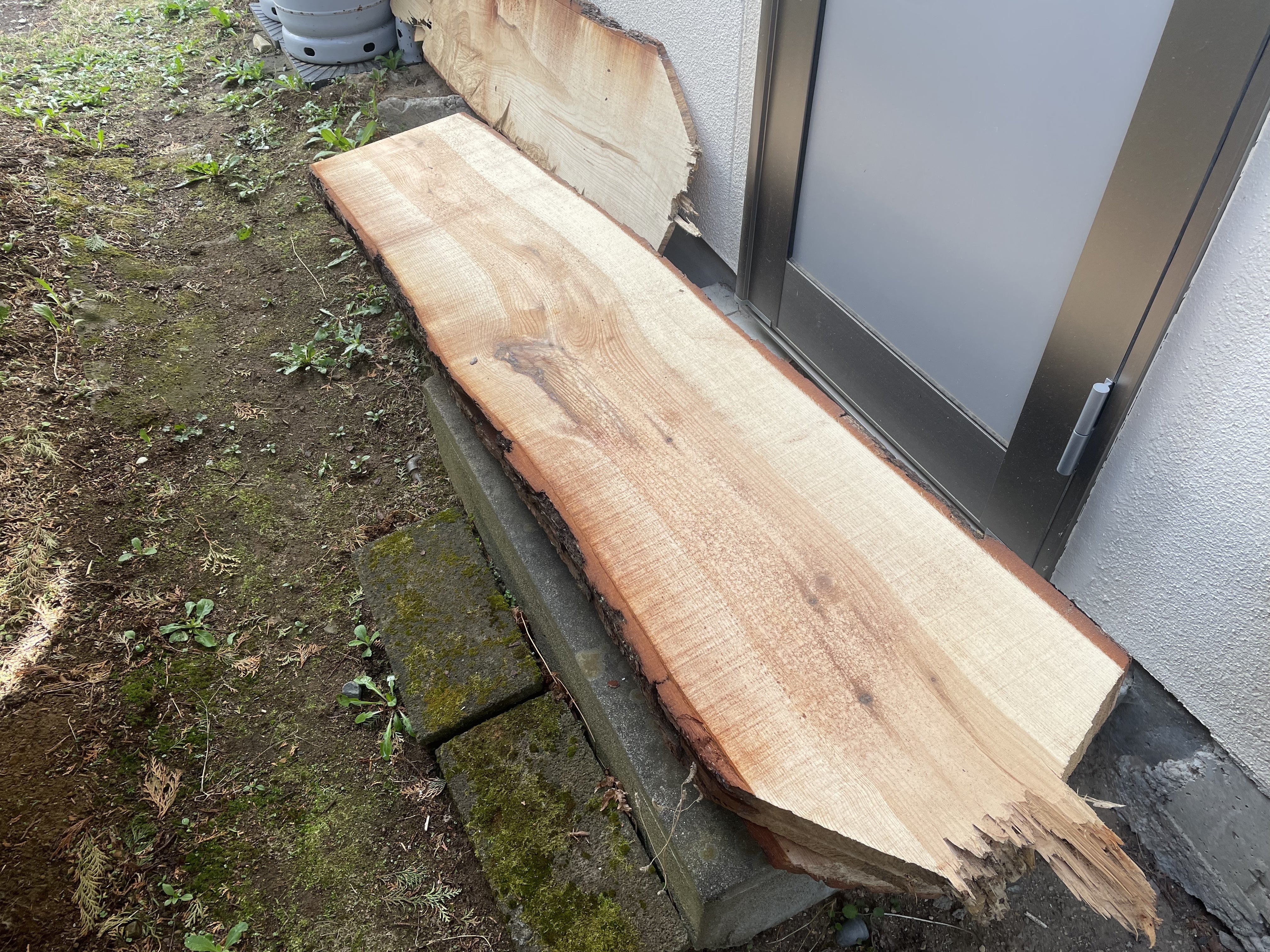 田んぼ近くにあった松の木を材木屋さんに切ってもらいました!この板に筆を使って描いてもらう予定です