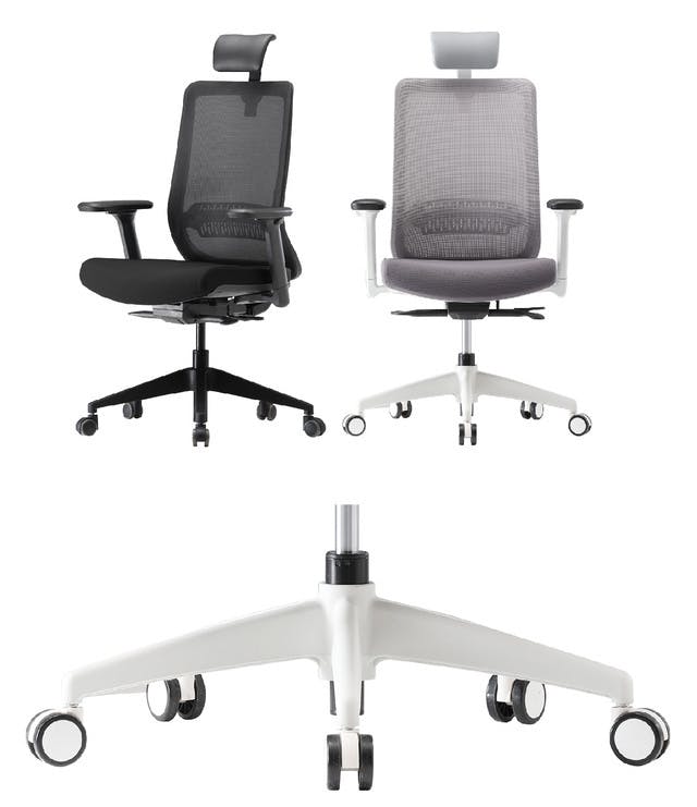 ワークチェア「KAITEKI」は、ナイロンホイール、キャスターにはウレタンを採用。