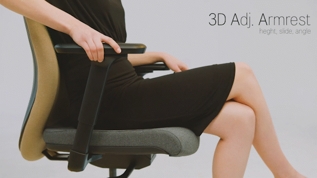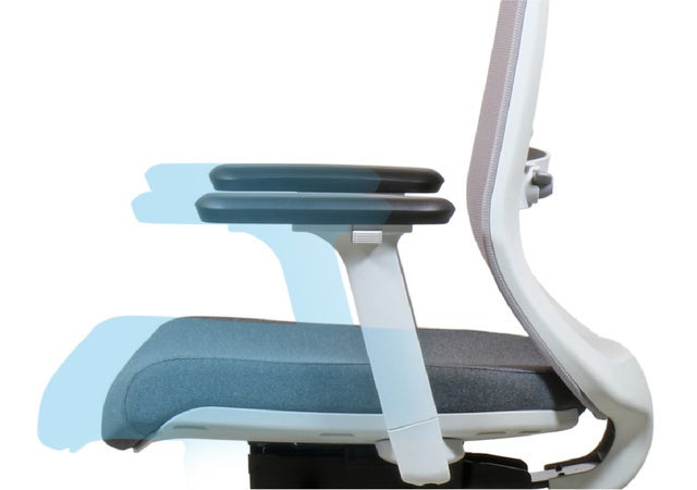 あなたの着座姿勢に合わせて、アームレストの高さ、前後・左右・角度の調整が出来ます。