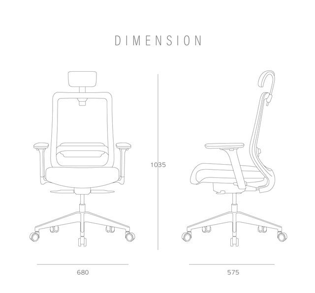 寸法:幅68cm×奥行57.5cm×高さ103.5cm材質:メッシュ(背もたれ)、ファブリック(座面)、ウレタン(肘掛け、キャスター)、ナイロン(ホイール)、プラスチック(可動式ランバーサポート)、スチール(支柱)