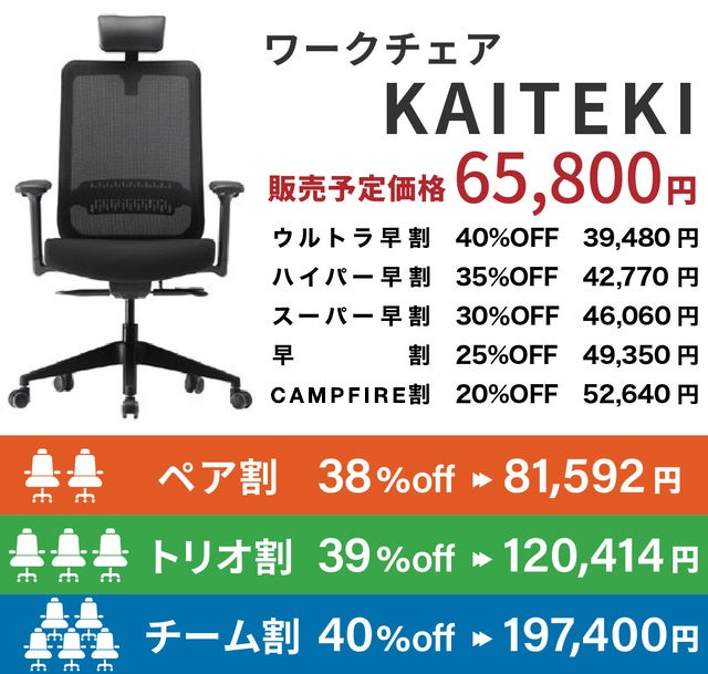 この度、韓国のチェアマイスター社と日本独占契約を締結し、CAMPFIREよりワークチェア「カイテキ KAITEKI」の日本先行販売が実現できる運びとなりました。