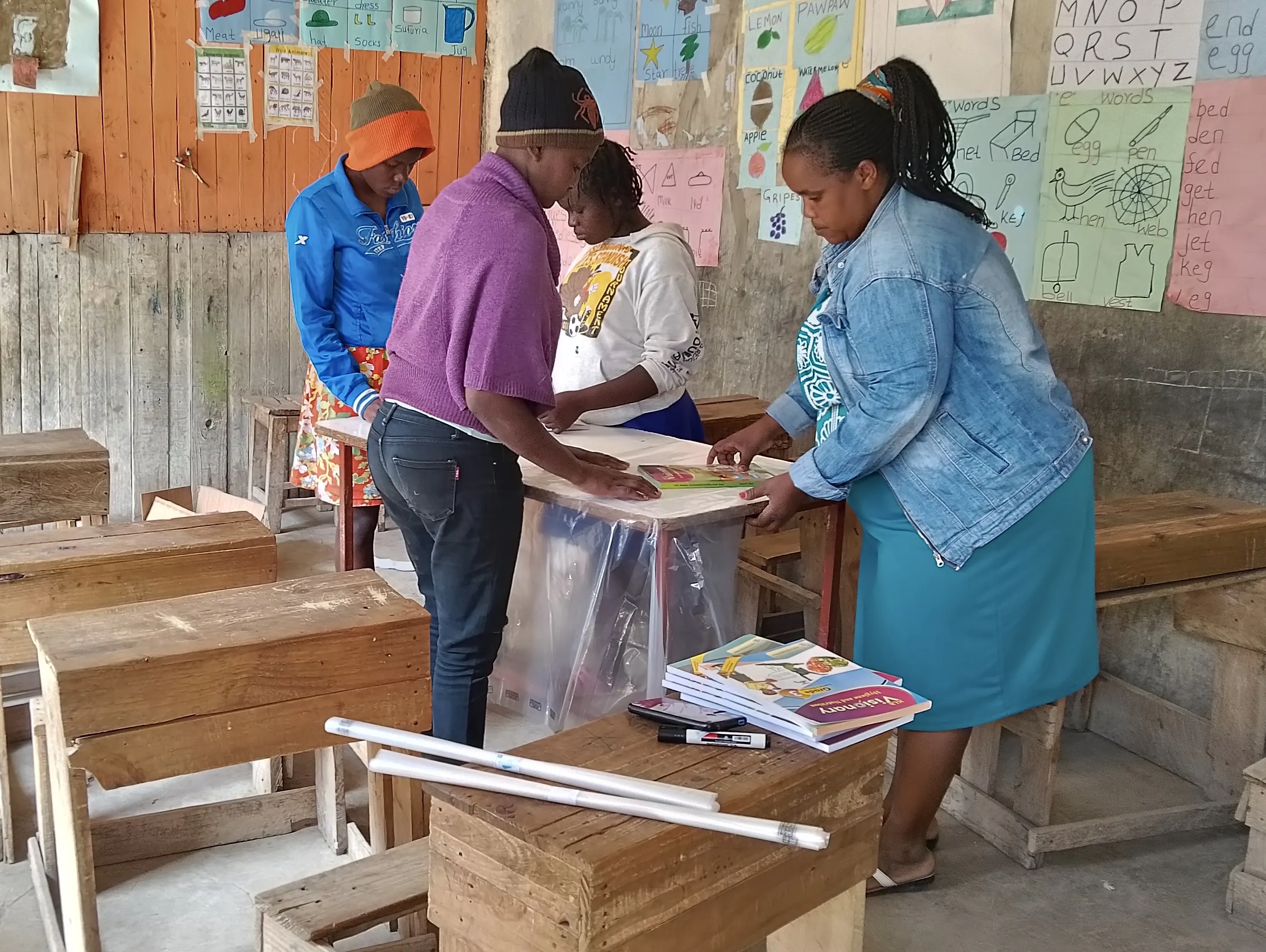児童たちは教科書を持っていないので、これから私たちの学校で貸し出すことにしたため。